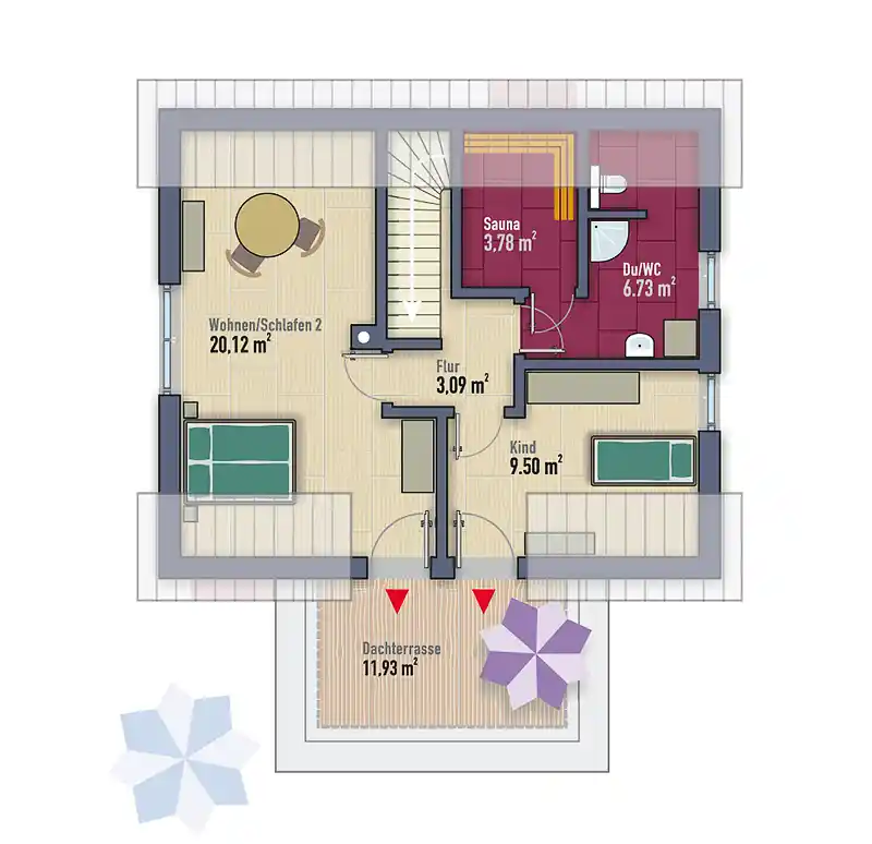 | zzgl. Terrasse, HWR & Dachterrasse | |