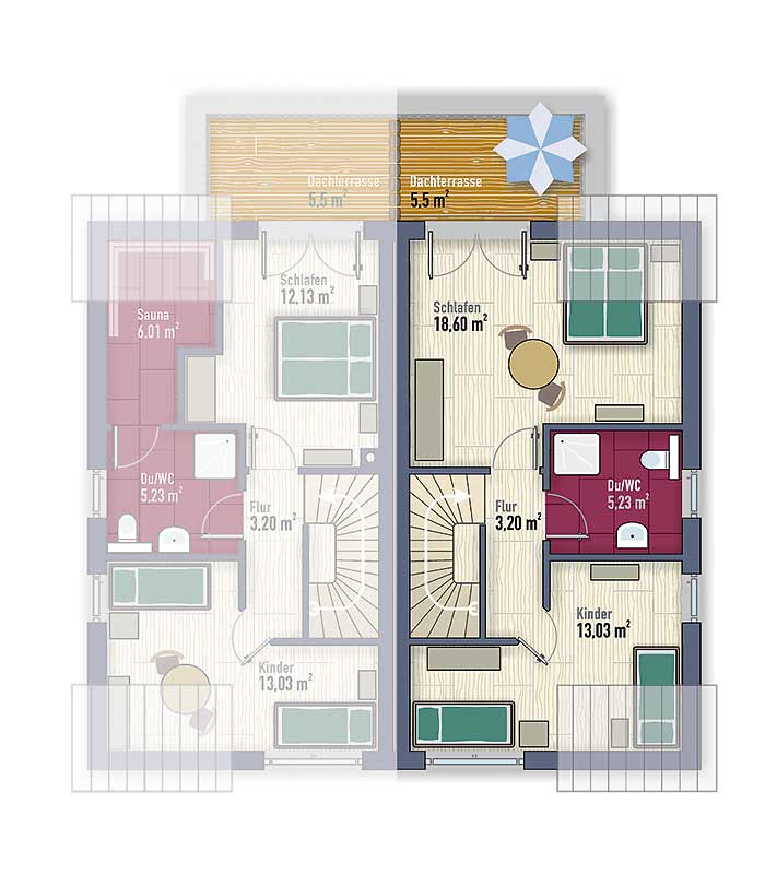 | zzgl. Flächen für Terrasse, HWR & Dachterrasse | |