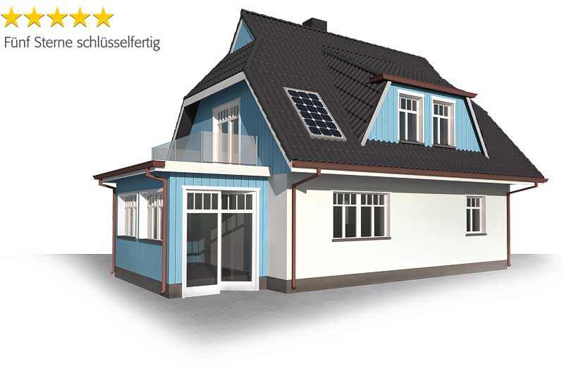Wie alle Küstentraum-Häuser, wird auch dieses 5-Sterne Einfamilienhaus schlüsselfertig übergeben. Für uns übliche Grundstücksgrößen im Ostseebad Prerow und dem Ostseeheilbad Zingst liegen im Bereich von 250 bis 500 m². Das richtet sich ganz nach den vorhandenen Gegebenheiten. Zum fertigen Objekt gehören auch außengestalterische Landschafts- und Pflasterarbeiten sowie eine hochwertige Grundstückseinfriedung dazu.
