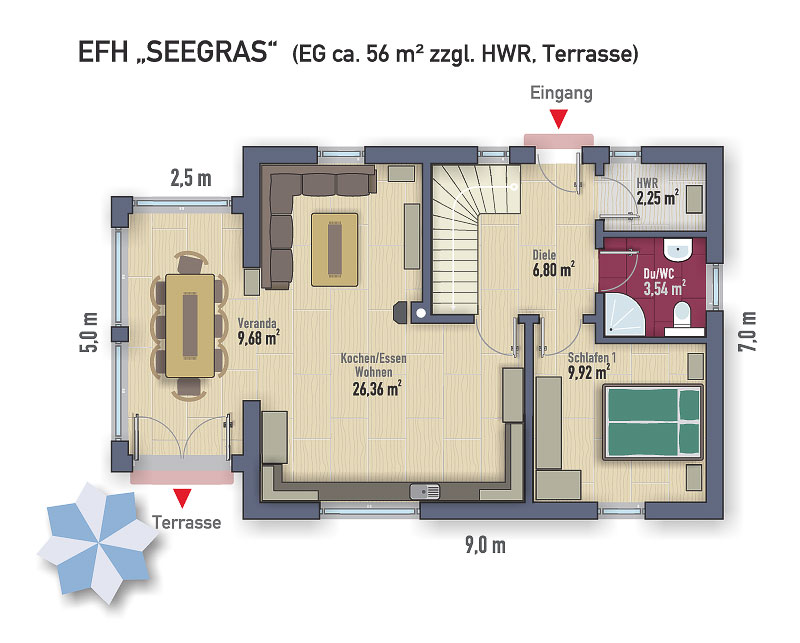 Wenn Sie es wünschen, wird auch eine hochwertige Möblierung durch uns ausgeführt. Zum Übergabetag erhalten Sie ein fertig eingerichtetes Ferienhaus. Auch später stehen wir Ihnen mit unseren Hausmeister- und Vermietungsdiensten hilfreich und kenntnisreich zur Seite.