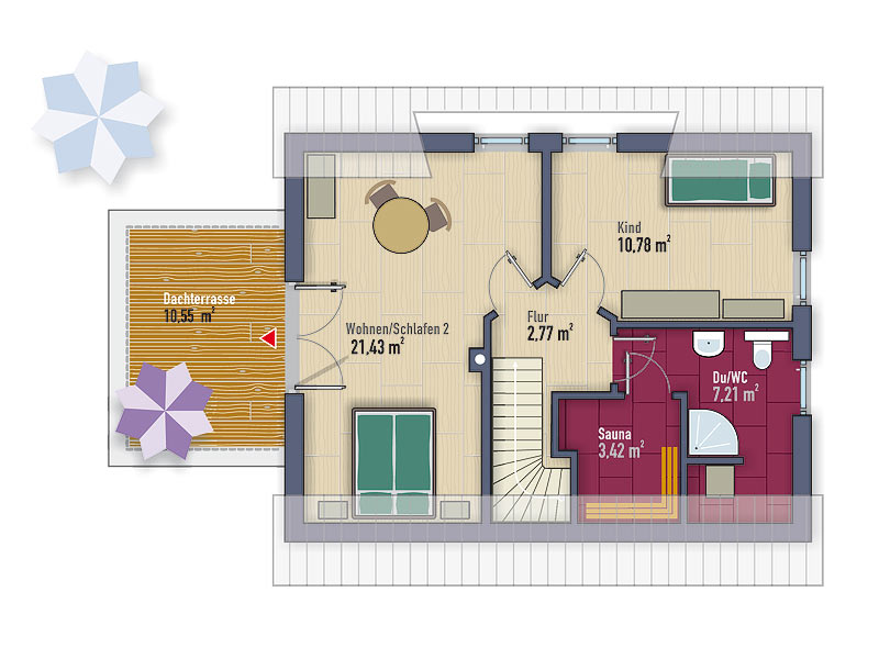 | zzgl. Flächen v. Terrasse, HWR & Dachterrasse | |